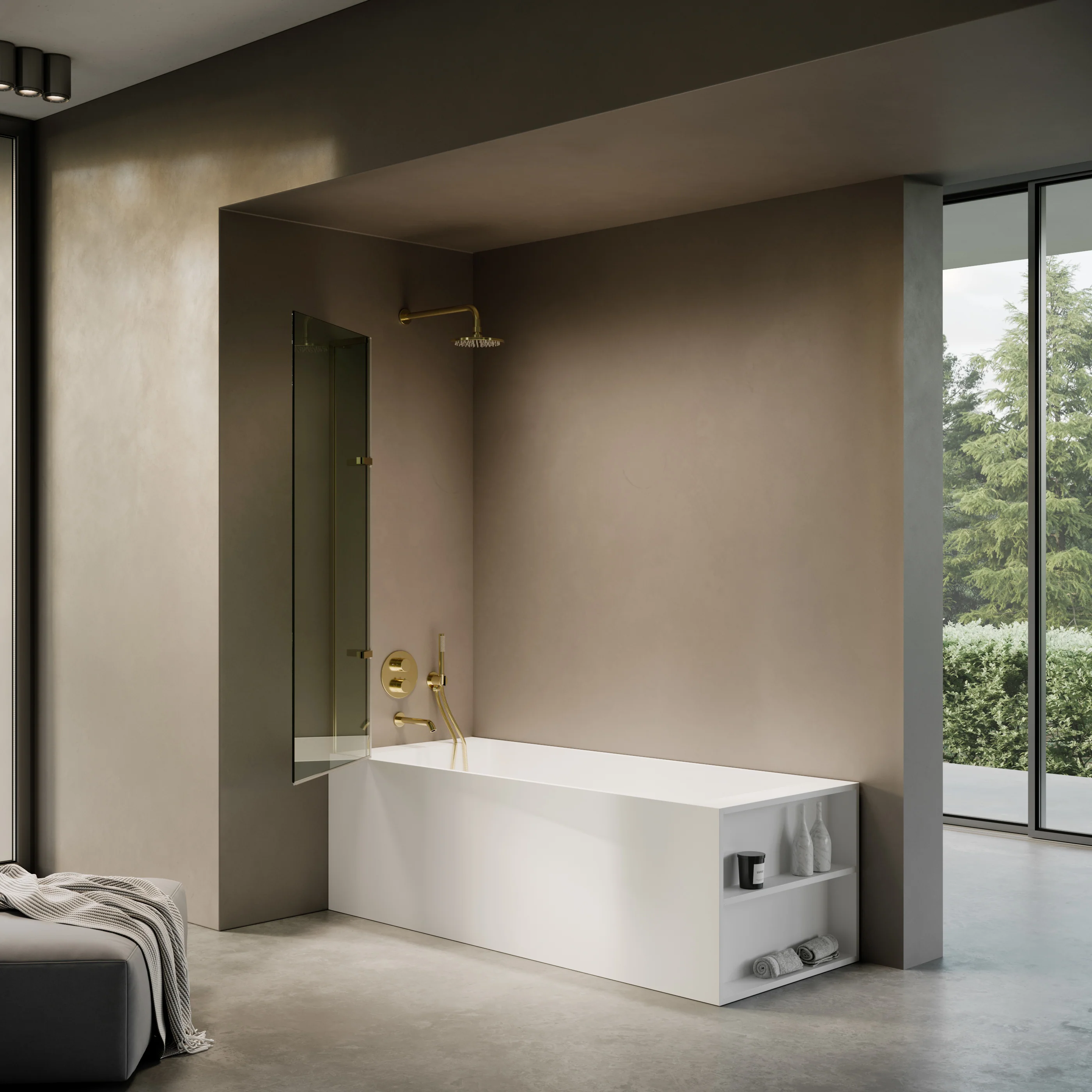Finished with polished brass accents, the Doccia screen exudes understated opulence, transforming your bath area into a serene sanctuary. For a cohesive aesthetic, pair with polished brass hardware from the wider Lusso collection.