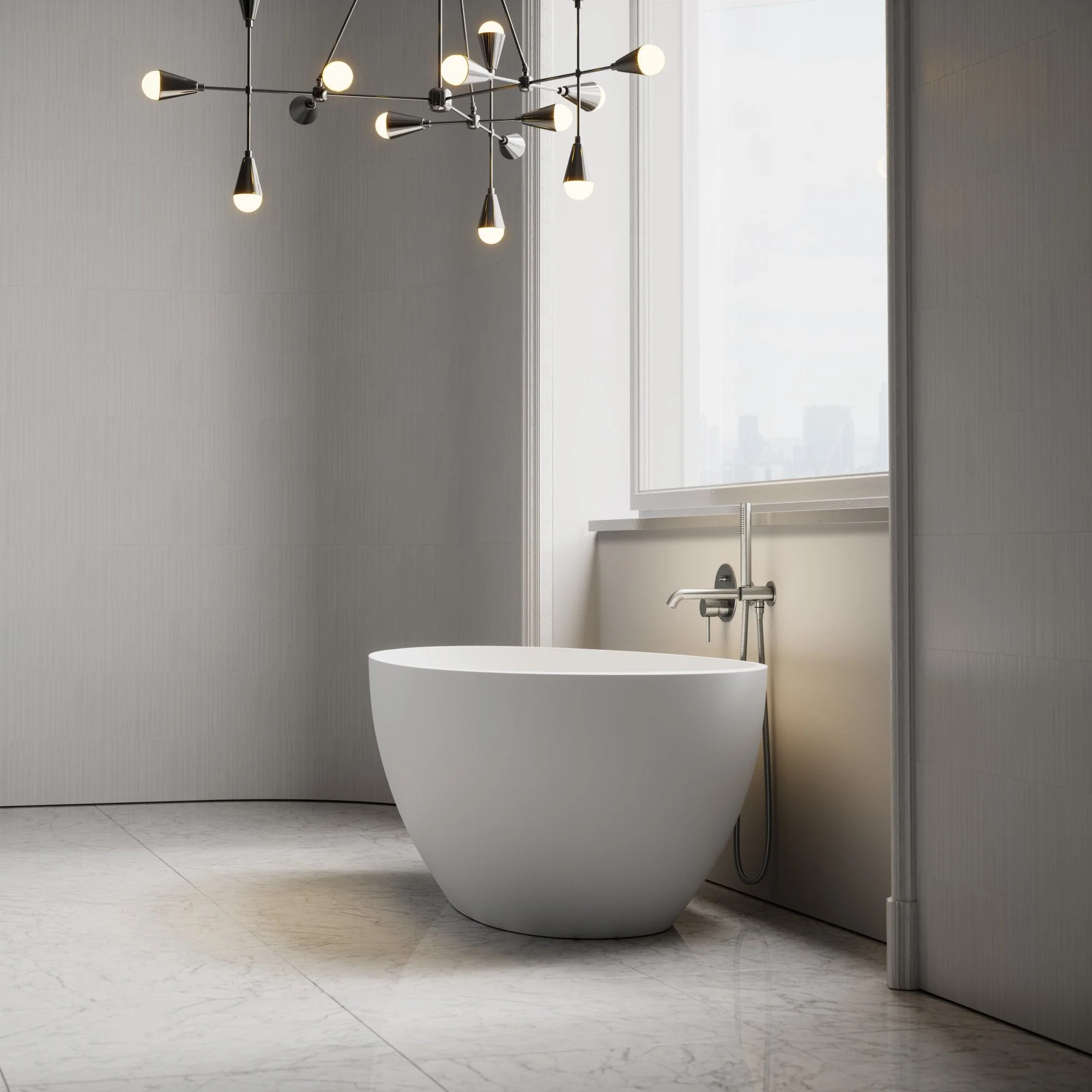 Perfect for small spaces, the Lusso Stone Egg Shell Mini Freestanding Stone Bath is contemporary luxury defined. Designed for either end bathing, the design achieves contemporary grandeur even in smaller, modern bathrooms. With a stone, clean-lined silhouette that's softened by the curves of the classic egg shape, it's simplistically chic for high-quality comfort when bathing.