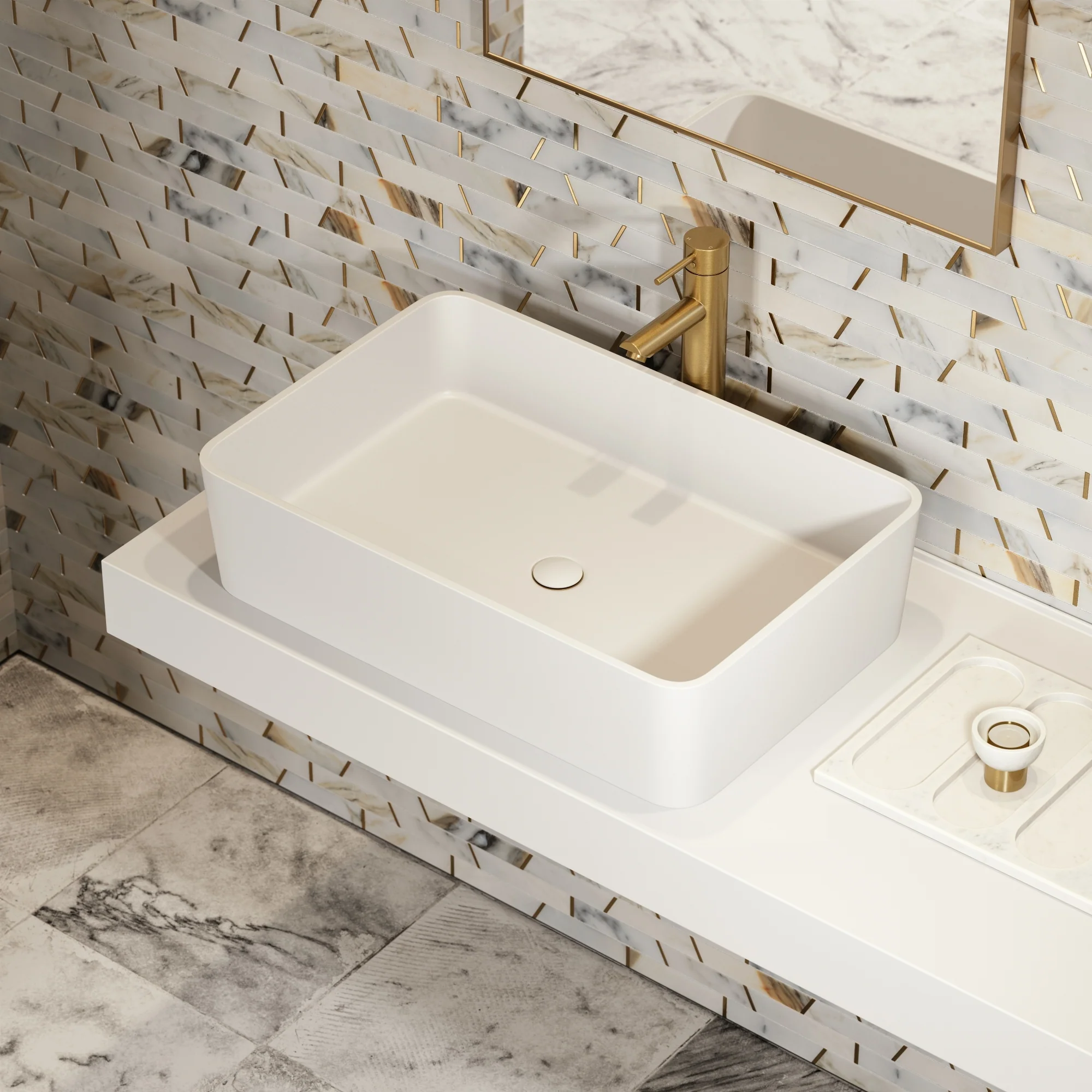 The Lusso Lauro countertop basin is a stunning example of minimalist elegance and style. Enriched by solid stone material and exquisite craftsmanship, the Lauro fits perfectly into any high-end interior. Deceptively simplistic in its design, the Lauro is distinctly modern without sacrificing sophistication. Elevate your interiors with truly contemporary style and be inspired by the understated luxury of the Lauro.