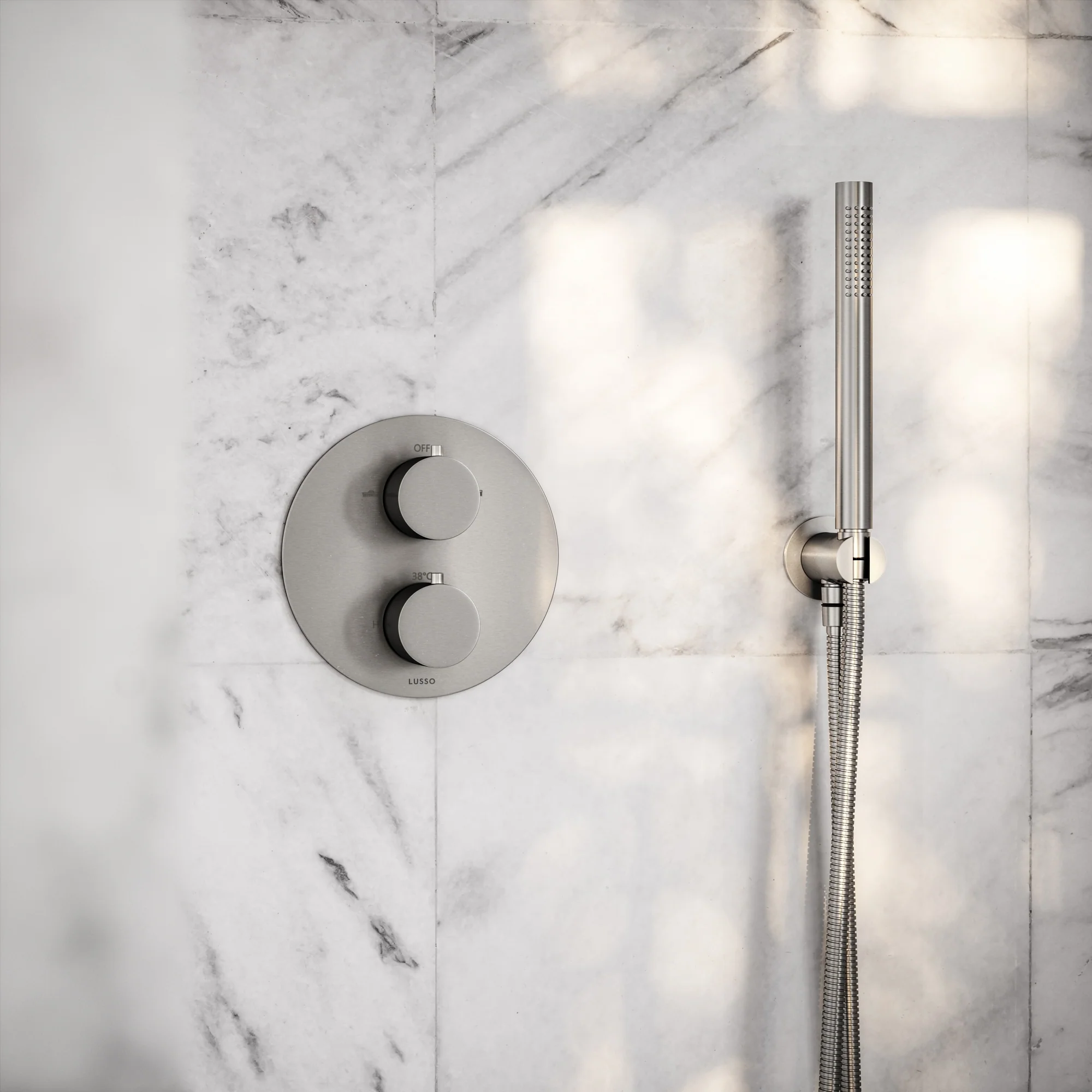 Luxe Brushed Stainless Thermostatic Shower with Handheld Shower