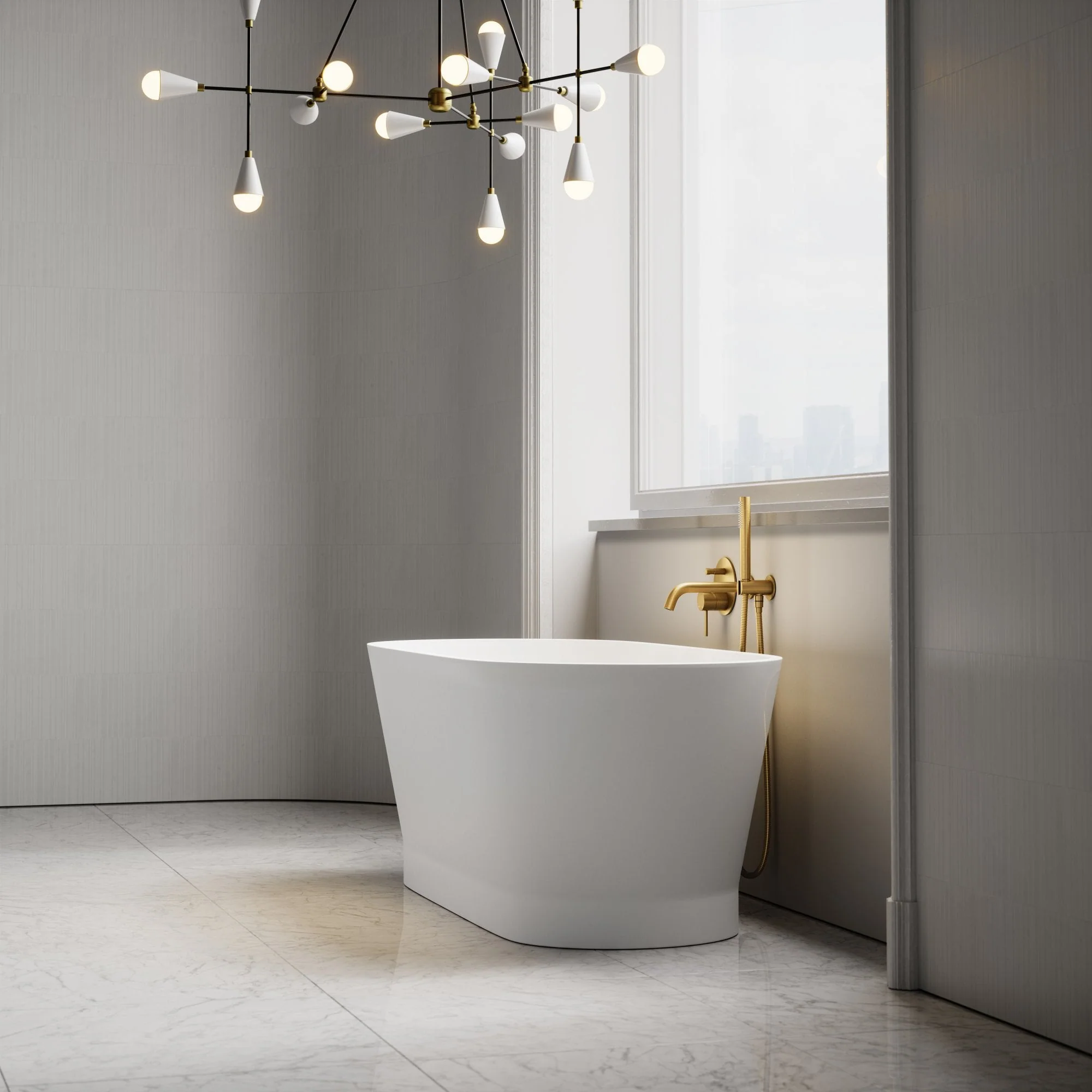 The Marlborough is a stunning example of minimalist elegance. Perfect for those looking for decadent bathing, this luxury bath embodies timeless design by blending classic elements with contemporary styling. Designed in Britain and hand-finished to create a beautifully bespoke feel, the Marlborough instantly elevates your living spaces, offering unrivalled excellence in quality and choice. A palatial living experience is on hand with the Marlborough stone bath, styled best with our opulent gold taps and bathroom accessories.