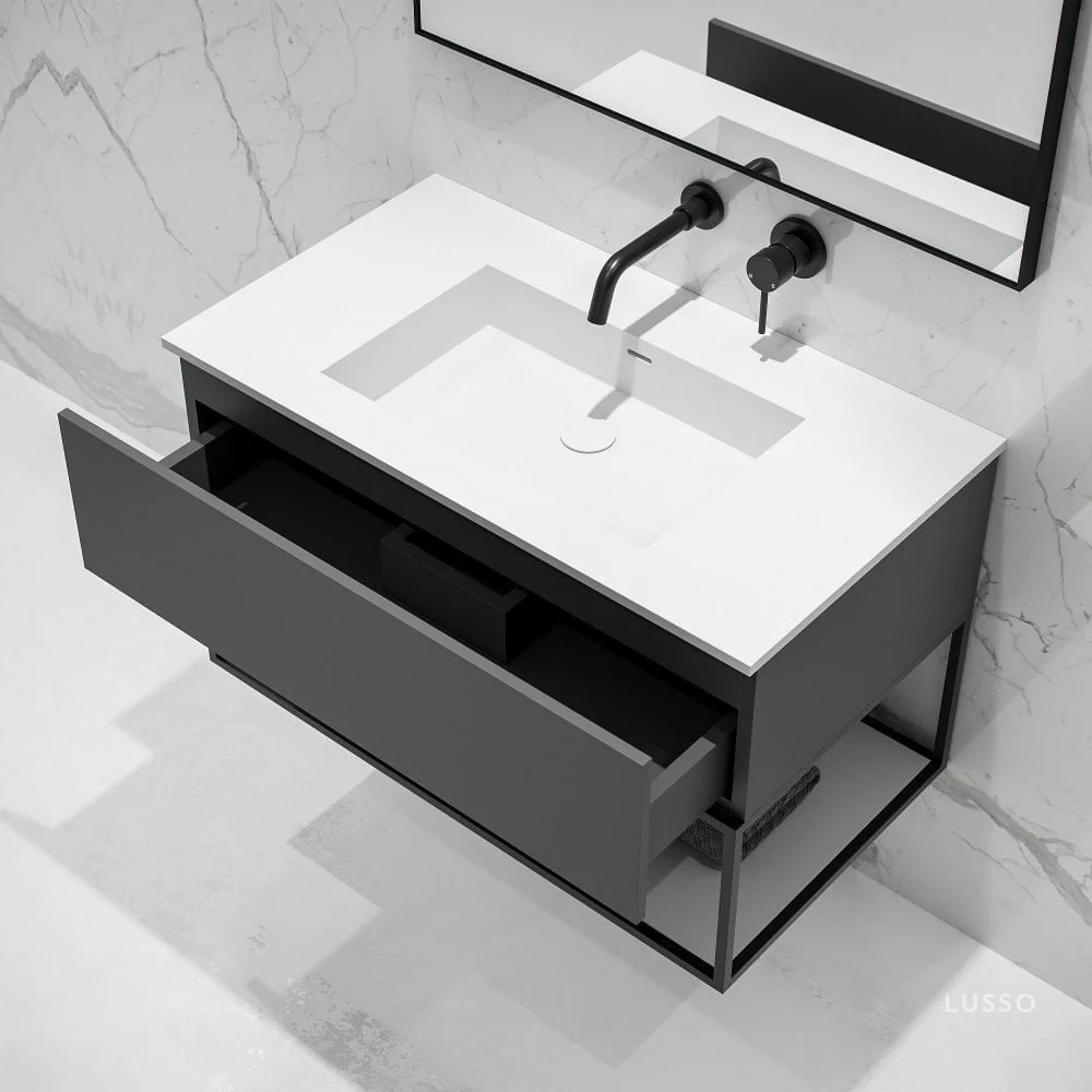 Modus Matte Anthracite Vanity Unit with Black Frame and Stone Basin 900mm