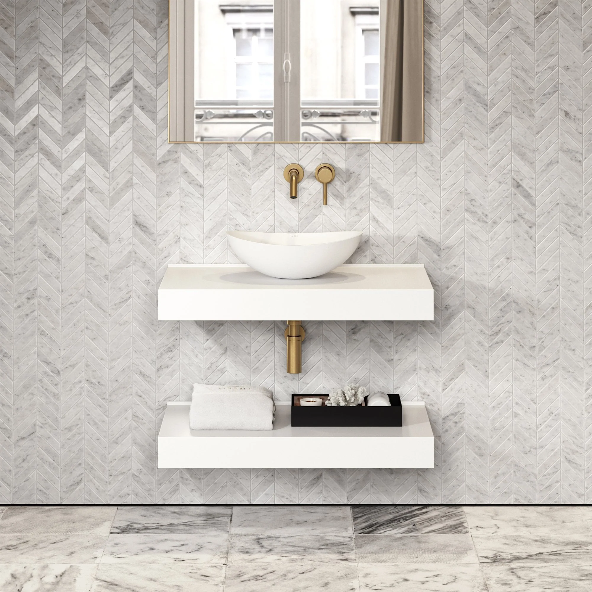 Stone Wall Hung Countertop Basin Shelf (800mm Wide - Matte/Polished White)