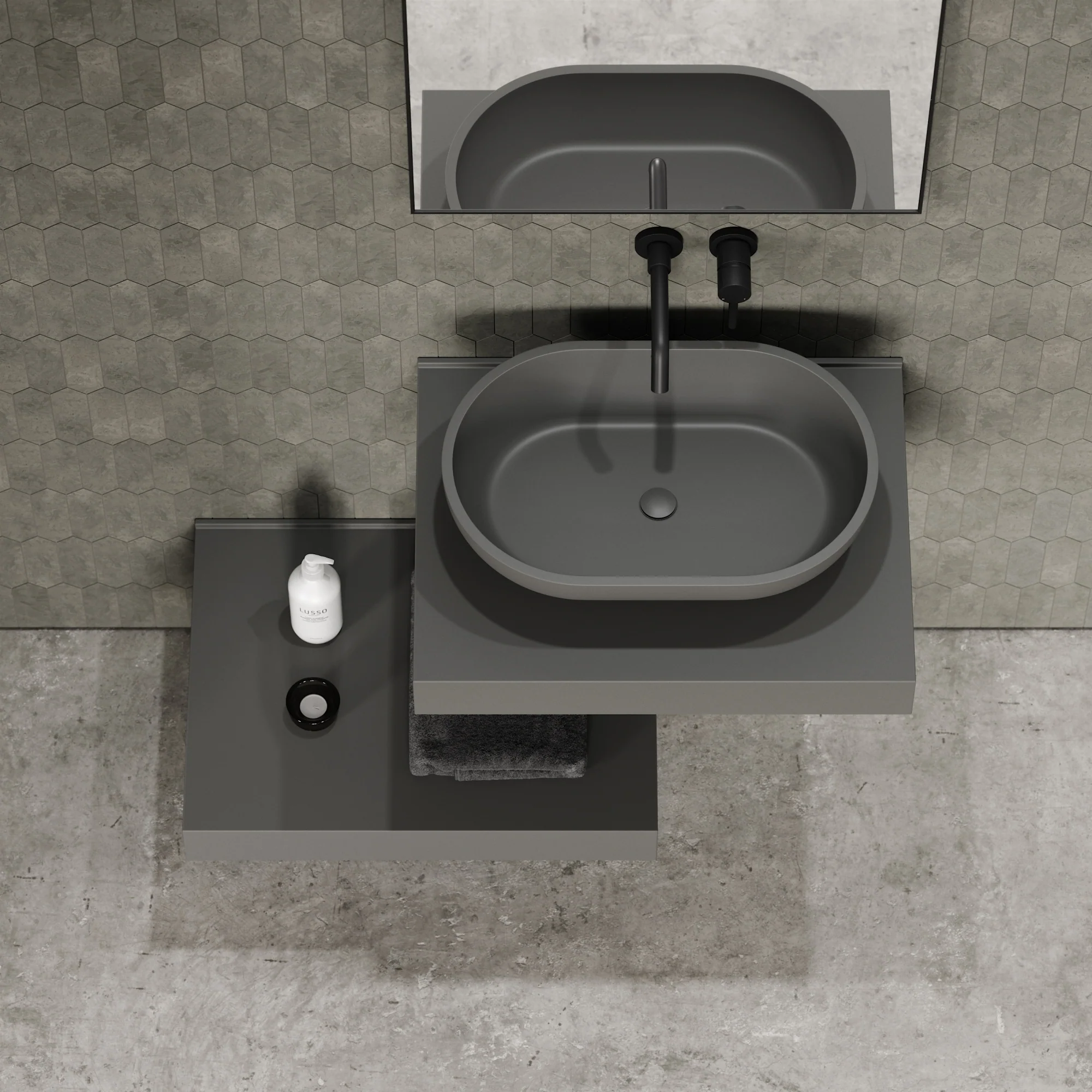 The Lusso Stone Countertops feature both clean lines and a look. Only 100 mm thick which gives it that modern contemporary look! Ideally designed to maximise space, this stone countertop comes supplied undrilled to allow flexible positioning of your Basin/Tap. The Lusso Stone Towel shelf is the perfect accessory to complete the look! Perfect for extra storage space. Featuring both clean lines and a look. Only 25 mm thick which gives it that modern contemporary look! Ideally designed to maximise space!
