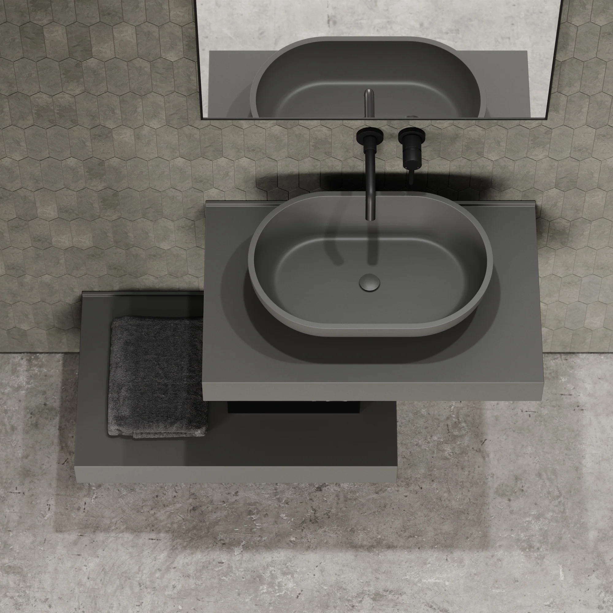 Stone Wall Hung Countertop Basin Shelf & Towel Shelf (800mm Wide - Clay)