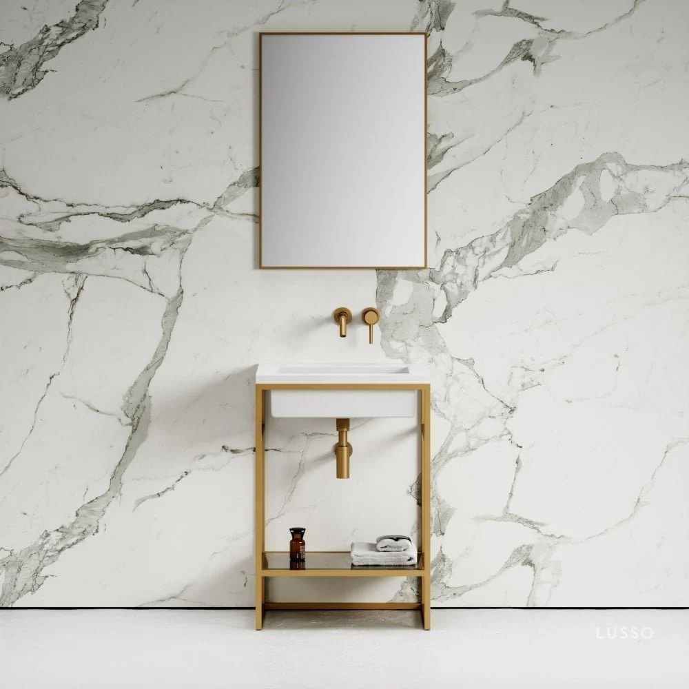 Signature Brushed Gold Frame Freestanding Bathroom Vanity Unit 600