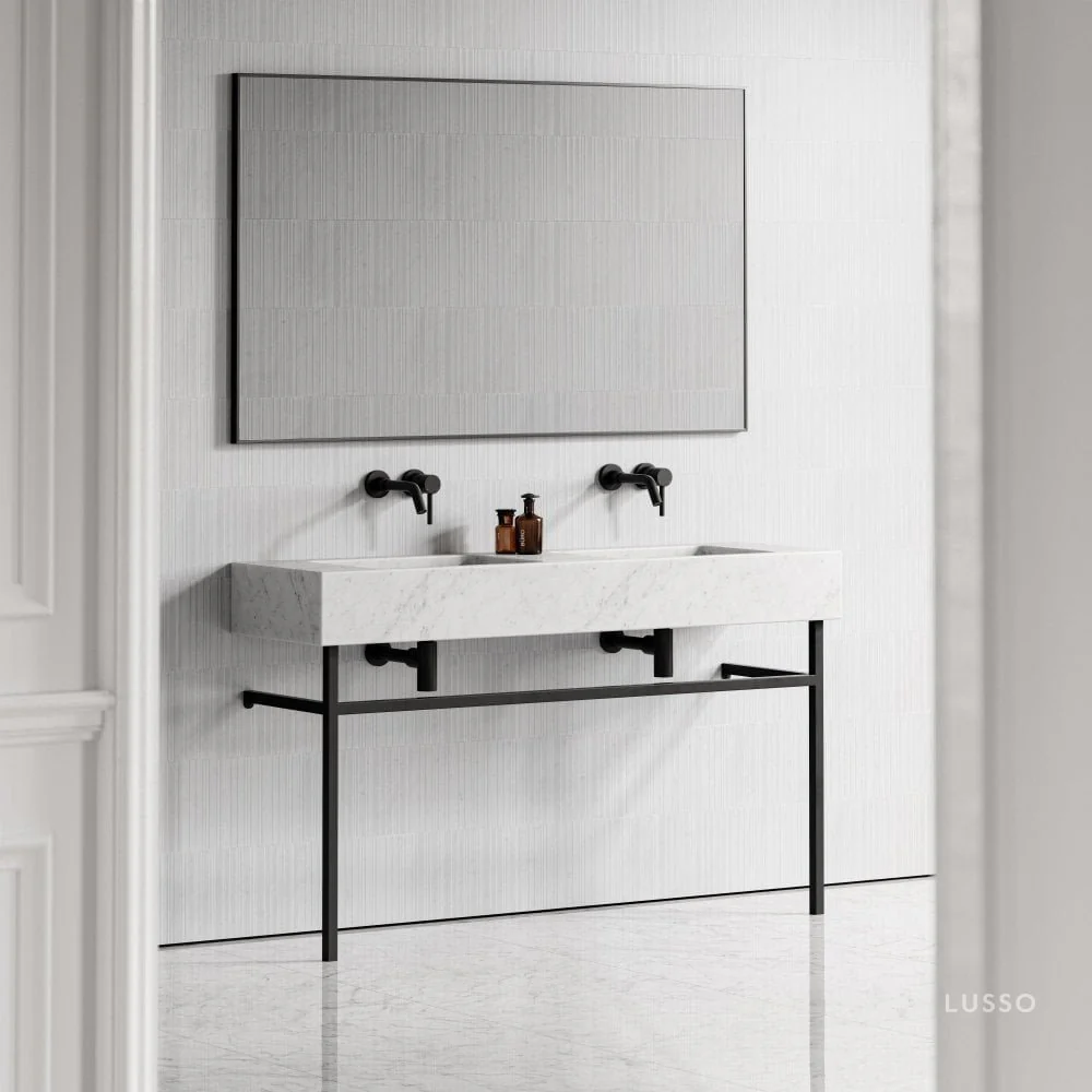 Vernante Carrara Marble Matte Black Vanity Unit 1400mm